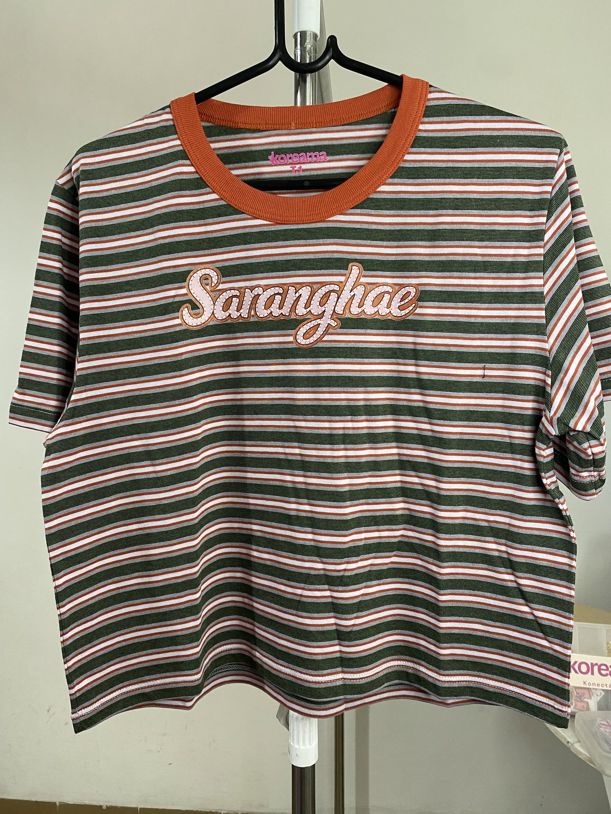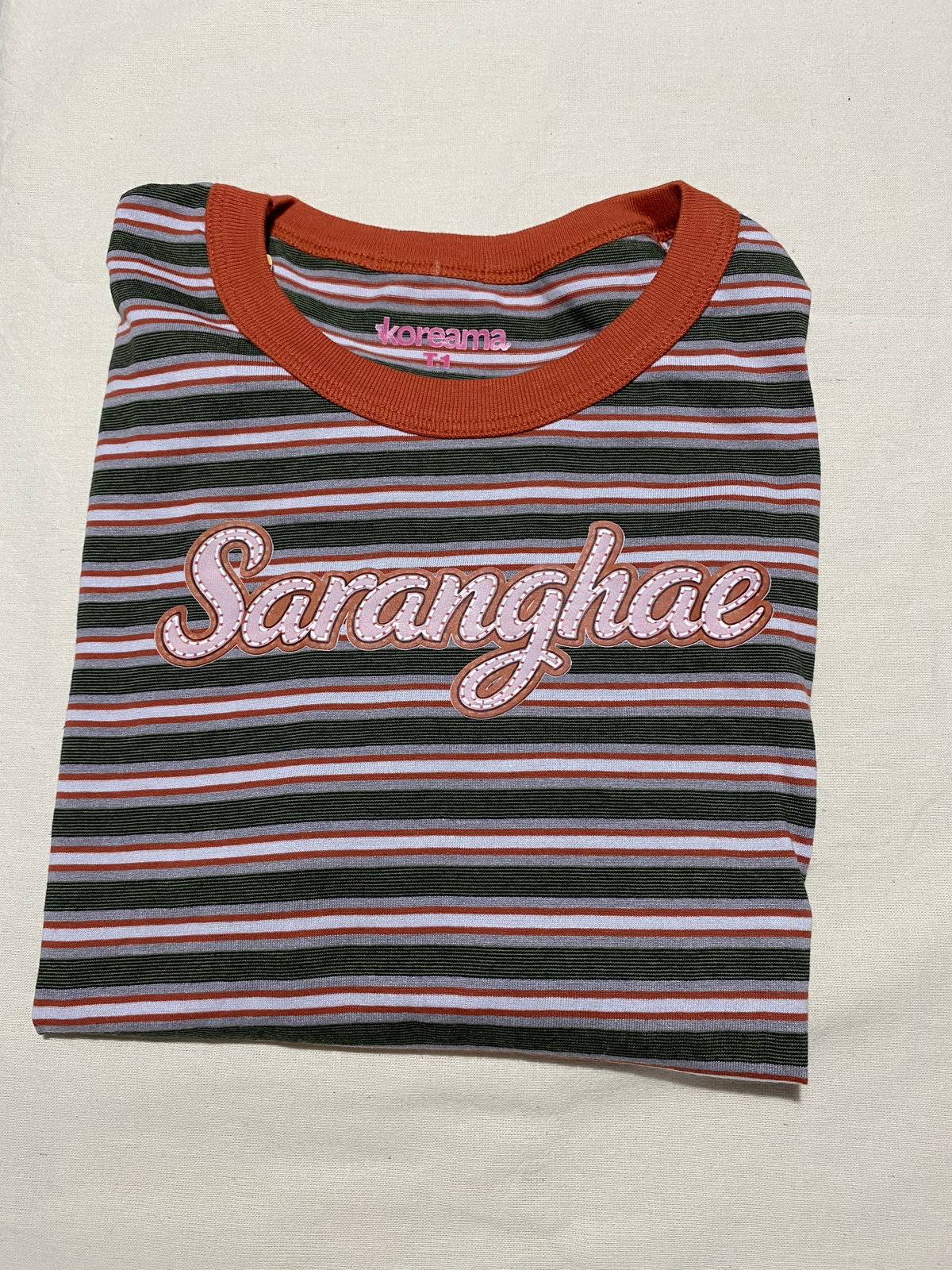 Remera Saranghae marrón y rosa